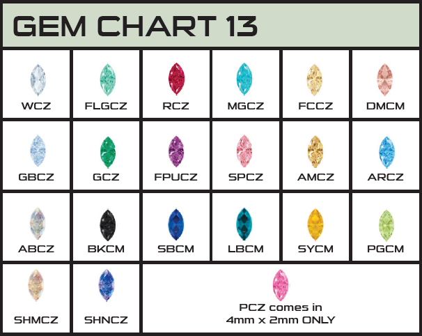 Gem Size: (3) 4mm x 2mm - Gem Chart 13